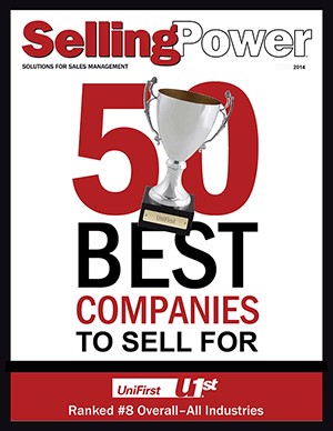 WILMINGTON, Mass. (August 2014) – UniFirst Corporation (NYSE: UNF), an industry leader in the supply and servicing of uniforms, workwear, and protective clothing throughout the U.S. and Canada, has been named one of the 50 Best Companies to Sell For by Selling Power magazine for a third year in a row. Securing the number eight spot and finishing only seven points off the number one position, the 2014 ranking represents UniFirst’s highest position on the list to date, having moved from number 17 in 2012 to number nine in 2013.The corporate research team at Selling Power identifies and ranks the best companies to sell for among the top sales forces in the United States. The focus includes companies of all sizes, with sales forces ranging from fewer than 100 salespeople to companies with salesforce numbers in the thousands. Other companies on the 2014 list include Google (#32) and Microsoft (#33).